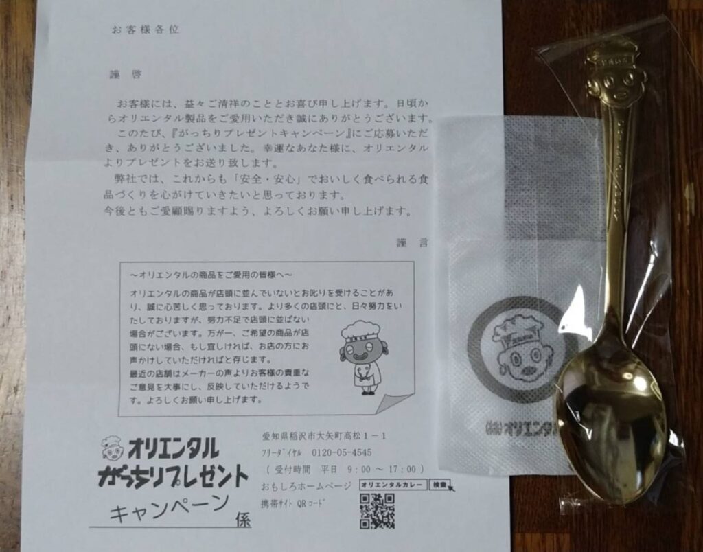 オリエンタルカレーに当たり券が入っていました!届いたプレゼントは?