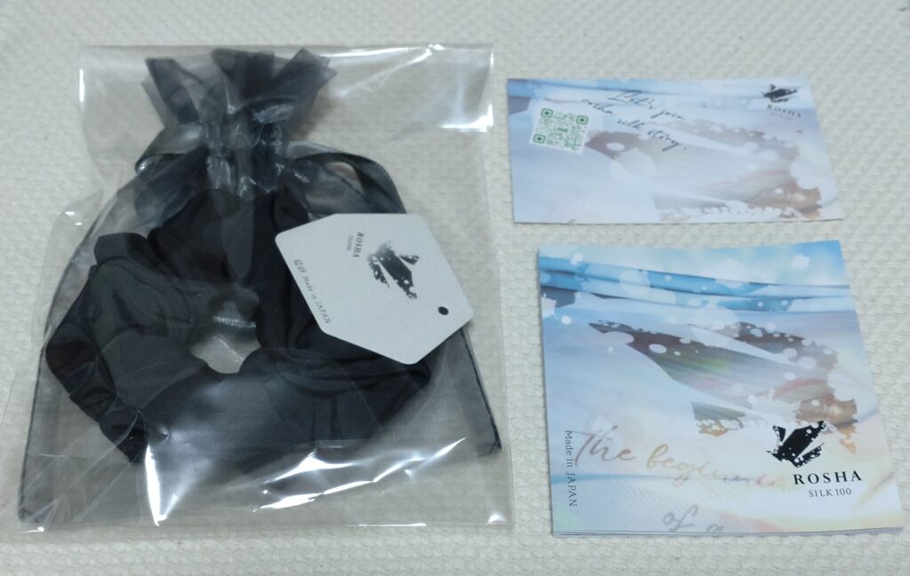日本製といえばROSHA(ろしゃ)さん。インナーマスクを数年前に購入した事あるので、今回はシュシュを購入させていただきました。