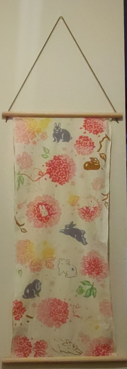 玄関に季節感を取り入れたいと思い、2026年春から手ぬぐいを飾る事にしました。